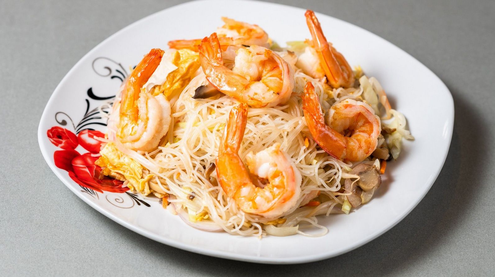 Με γαρίδες, αυγό, κρεμμύδι, καρότο, λάχανο, μανιτάρια και κινέζικα μανιτάρια